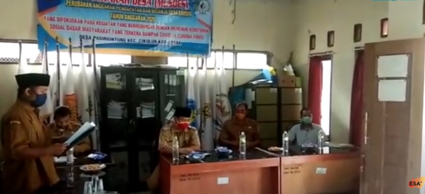 Lebak, Aparatur Desa Pasir gintung, kecamatan Cikulur melaksanakan Musyawarah Desa (Musdes) khusus dalam rangka perubahan APBDes tahun 2020 di Aula Desa Selasa (21/4/20). Dalam acara musdes khusus ini dihadiri Oleh Camat Cikulur DR. Iyan Fitriyana S. H. I M.Pd, kepala desa pasir gintung Saripudin didampingi...